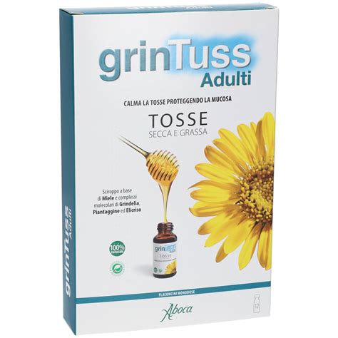 Aboca Grintuss è un dispositivo medico 100% naturale, senza glutine, progettato per adulti. Agisce sulla tosse secca e grassa, proteggendo la mucosa. Offre un'azione protettiva e lenitiva, contrastando l'irritazione.