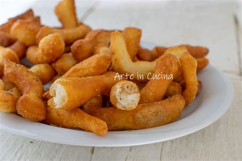Versate abbondante olio di semi in un padellino e fatelo riscaldare. Quando è caldo, tuffate l’impasto lievitato a poco a poco, tagliato a striscioline sottili, senza maneggiarlo troppo per non farlo sgonfiare.