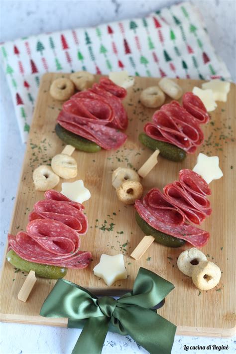 | Alberelli di Salame | Salame ungherese, formaggio, olive | Infilzare a forma di albero | Natale, feste |