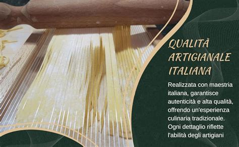 - Chitarra tagliapasta doppia: In legno di faggio per spaghetti e fettuccine, completa di mattarello. Potrete “appendere” le tagliatelle, i tagliolini, le pappardelle e gli spaghetti alla chitarra.