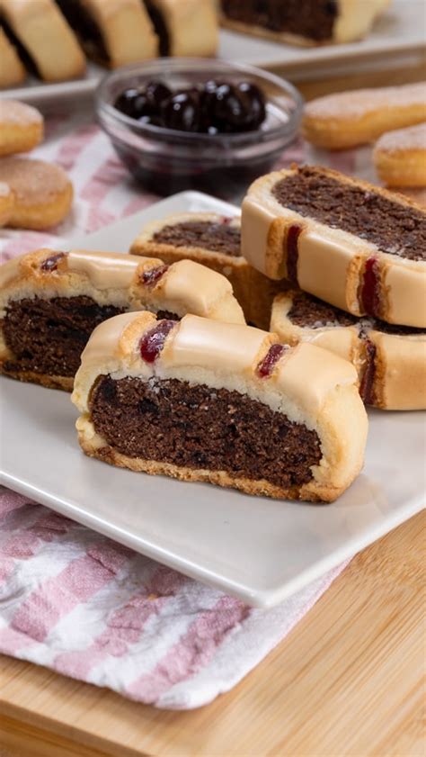 Solitamente per l’interno del biscotto, che deve essere umido e saporito, si mescolano gli ingredienti: il pan di spagna (o altre rimanenze di biscotti), il cacao amaro, lo sciroppo di amarene, il liquore (Rum o Strega) e a volte anche le mandorle. Questo ripieno gustoso viene poi avvolto in uno strato di pasta frolla, che rende il biscotto croccante all’esterno. In ultimo, dopo avergli dato una forma allungata e leggermente schiacciata, si ricopre tutto con una glassa fatta di zucchero e chiara dell’uovo. Sulla glassa si disegnano le caratteristiche linee fatte con la marmellata.