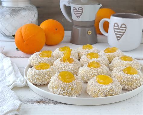 Per prepararli bastano davvero pochi minuti: versi tutto in una ciotola, impasti, un piccolo riposo in frigo e poi via di palline da farcire al centro con la vostra marmellata o confettura preferita. Io ho usato quella all’arancia che, con mia grande sorpresa, si è rivelata perfetta in abbinamento al cocco… ma via libera anche a fragole e frutti rossi di tutti i tipi. Vi avviso: ne mangiate uno e non smettete più!