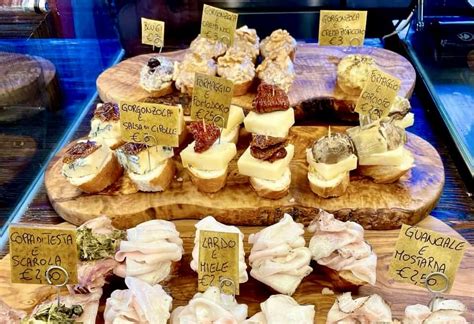 Cicchetti: La proposta dei cicchetti, soprattutto piccoli assaggi serviti su fette di pane, non scarseggia: si passa da quelli con i salumi, ai formaggi, per arrivare alle verdure e al pesce, magari accompagnati da salse.
