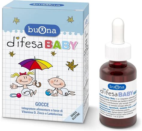 Buona Difesa Baby è un integratore alimentare in gocce specificatamente formulato per bambini e lattanti. È formulato per supportare il sistema immunitario e il normale sviluppo delle ossa, grazie alla presenza di vitamina D e zinco. La vitamina D aiuta a mantenere ossa forti e sane, mentre lo zinco è essenziale per la protezione contro lo stress ossidativo.