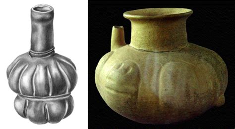 Recipienti di ceramica dall’Honduras che sono risultati positivi alla teobromina: (sx) bottiglia in stile Bruno Barraca del 1150 a.C.; (dx) vaso della fase Playa del 380 a.C.