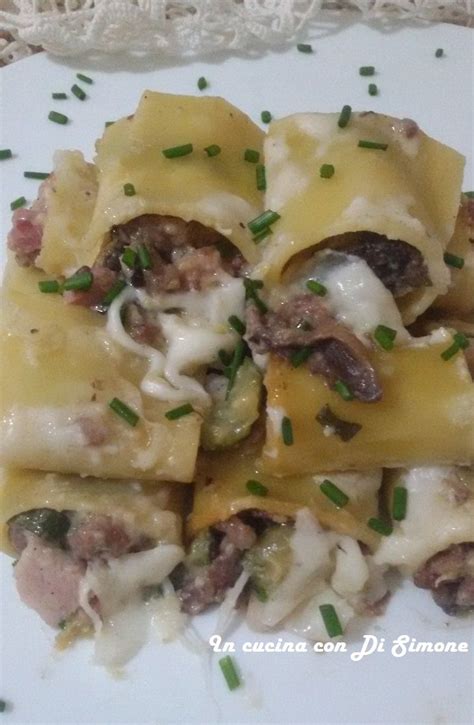 I paccheri ripieni di funghi e salsiccia sono un primo piatto di pasta ripiena e cotta al forno, semplice e molto gustoso, adatto a tantissime circostanze che delizieranno i vostri ospiti! I paccheri ripieni di funghi e salsiccia sono un primo piatto di pasta ripiena con funghi champignon, salsiccia e ricotta, ricoperti di besciamella e cotti al forno. Un piatto buono, sostanzioso ed anche molto scenografico che potrete decidere di portare in tavola per un pranzo domenicale o per un'occasione importante.