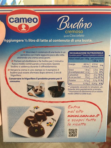 - 1 busta di preparato per budino cremoso gusto cioccolato Cameo (8 porzioni)