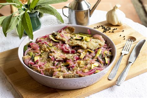 - In una ciotola o in una terrina metti le cotolette di vitello e le zucchine a strati, quindi versa la marinatura ancora calda: dovrà ricoprire quasi completamente tutto. Fai raffreddare completamente il carpione, prima di metterlo in frigo.