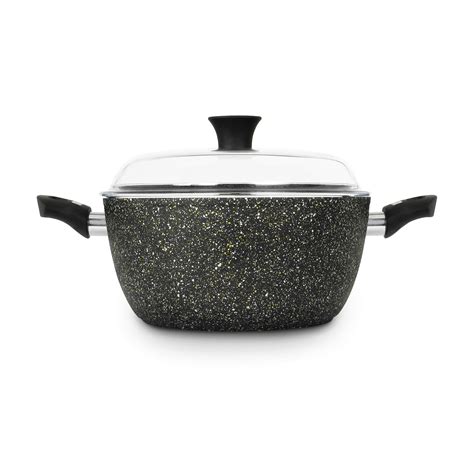 - Pietra Lavica e Titanio: Le casseruole con rivestimento in roccia lavica e titanio (Quantanium) offrono una superficie antiaderente, antigraffio e antibatterica naturale. Questo trattamento garantisce una cottura di alta qualità e una lunga durata nel tempo.