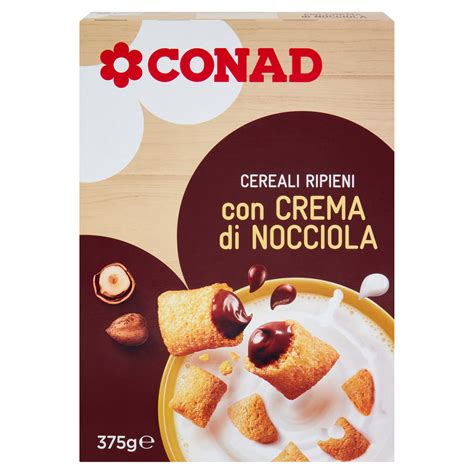 Puoi trovare i Cereali croccanti ripieni di crema al cioccolato e nocciole 375g Conad in offerta negli scaffali online dello store di Conad o nei negozi fisici. Non tentennare!