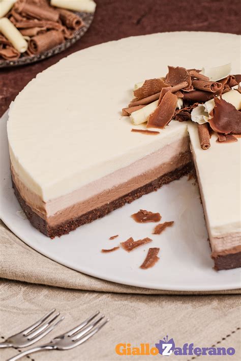 La cheesecake al triplo cioccolato è un goloso dolce con tre strati di incredibile bontà al cioccolato, uno più buono dell'altro, che spaziano dal fondente, al latte fin ad arrivare a quello bianco. Non una semplice cheesecake al cioccolato, ma un vero e proprio trionfo di bontà con una triplice scelta di gusto.