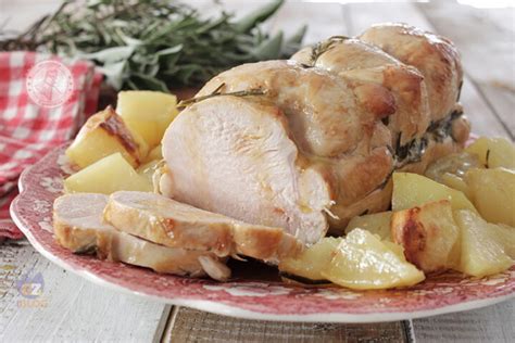 Ad impreziosire questo semplice piatto, oltre alle erbe aromatiche, timo e rosmarino, ci sono anche le cipolle e i pomodorini che aggiungono una nota dolce ed insieme leggermente acida, che si accompagna benissimo con la delicata carne del tacchino e con le patate, che assorbono gusti e profumi.