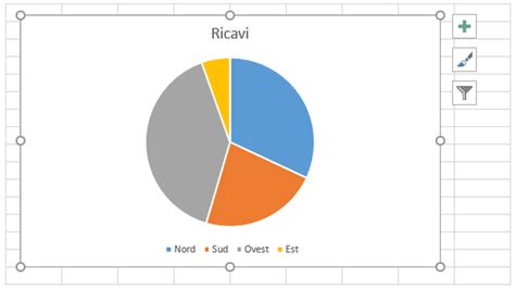 Nel software desktop di Excel, la rappresentazione del grafico a torta può essere personalizzata in ogni suo aspetto. Cliccando sul grafico, appariranno delle icone sulla destra: l'icona a forma di imbuto permette di filtrare i dati, mentre l'icona del pennello consente di modificare lo stile e i colori.