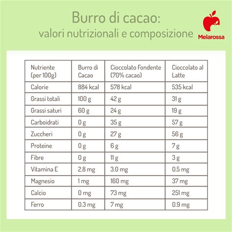 Tabella Nutrizionale del Burro di Cacao (per 100g)