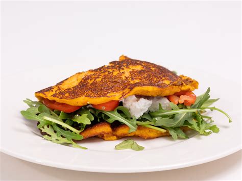 La mia proposta di farcitura prevede degli spinaci ripassati in padella e del petto di tacchino arrosto, un affettato magro e leggero ricco di proteine ma ricco in sale come tutti i salumi, per questo motivo non ho aggiunto sale nell’impasto.Infine, farcisci le crepes con la rucola.