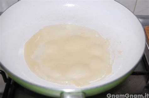 - Quando il burro sarà ben riscaldato versatevi un mestolo di composto e roteate bene per distribuirlo omogeneamente.