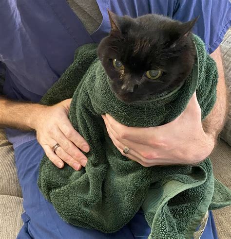 Avvolgere il gatto in un asciugamano può aiutare a immobilizzarlo in sicurezza.