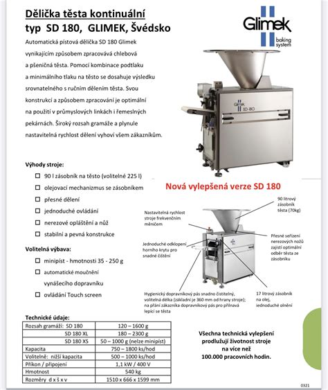 Il modello SD-600 di Glimek è un divisore di pasta volumetrico in acciaio inossidabile, disponibile sia in configurazione a 3 camere che a 2/4 camere. Questa macchina è progettata per una produzione industriale ad alta capacità e offre una manipolazione delicata dell'impasto, sia rigido che morbido.