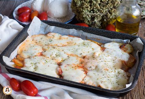 Trascorso il tempo, sforniamo la pizza e aggiungiamo la mozzarella a dadini. Tira fuori la teglia per un istante, aggiungi la mozzarella (tagliata a dadini e ben sgocciolata) e un filo d'olio. Sposta la teglia nel ripiano centrale del forno e cuoci per altri 5 minuti, finché la mozzarella non sarà fusa e i bordi ben dorati. La nostra pizza in teglia è pronta! Alta, soffice e con la mozzarella filante.