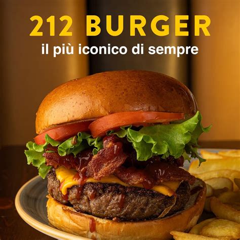 - 212: burger di manzo italiano, cheddar, bacon, pomodoro, insalata e original american BBQ;