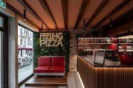 Feeling Pizza è un locale di stile contemporaneo, aperto alla città. Il primo locale del brand si estende su una superficie di 250 metri quadrati con una capacità di circa 75 coperti, accogliendo la clientela in un'ambiente moderno e sofisticato. L'arredamento, dal fascino industriale con mattoni a vista, pareti jungle e neon glam, crea un’atmosfera invitante, dove gustare i piatti della cucina partenopea.