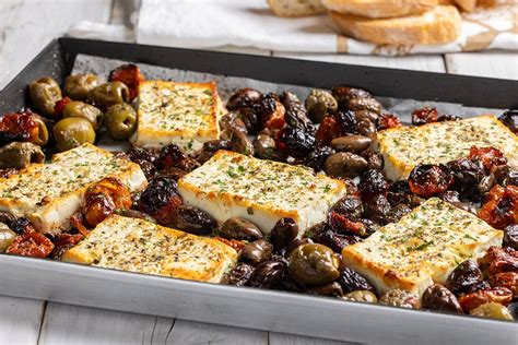 - Feta al forno: Una ricetta tipica greca, a base di formaggio feta, pomodorini, olive, basilico, aglio, olio e origano.