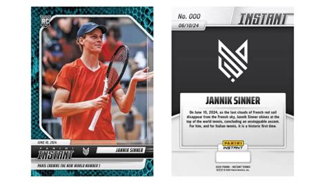 Nuovo successo per Jannik Sinner che in poche ore ha visto andare sold-out le "instant card" a tiratura limitata realizzate con Panini per celebrare la prosecuzione di una collaborazione pluriennale fra la nota casa editrice modenese e il campione altoatesino. Si tratta solo del primo appuntamento di una programmazione editoriale ma segna già un grande successo, considerando che sul sito americano di Panini è stata subito venduta anche la card autografata del valore di 1500 dollari.