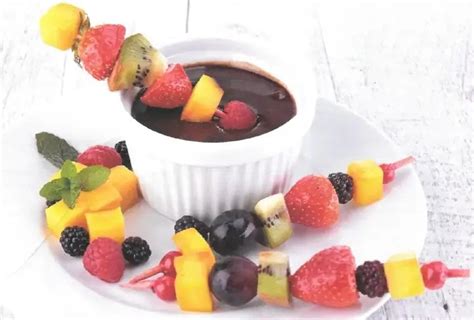 - Composizione creativa: disponi gli spiedini di frutta al cioccolato in modo artistico sul piatto. Puoi formare un cuore con gli spiedini o disporli in modo simmetrico per un effetto visivo accattivante.