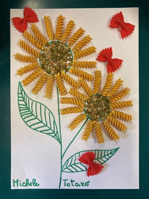 - Quadretti con la pasta: Realizzate il disegno sul cartoncino o la tela, poi applicate la colla vinilica sul cartoncino seguendo il disegno. Incollate i pezzi di pasta uno alla volta, premendo leggermente per farli aderire bene. Lasciate asciugare completamente.