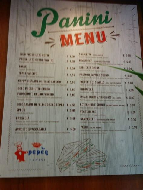 Il menu sarà fedele all’originale, seguendo il concetto storicamente espresso da Pepèn: trasferire le ricette dei piatti più buoni all’interno di un panino. Non mancheranno i panini classici, come il Pesto di Cavallo Crudo e lo Spaccaballe, oltre alle mitiche polpette, la Carciofa, le tartine ed i tramezzini.