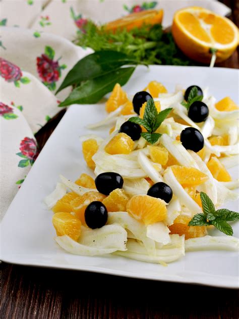 L’insalata di finocchi e olive taggiasche è un contorno tipicamente invernale arricchito con arance e noci. Le olive taggiasche, note per il loro gusto intenso e le piccole dimensioni, spezzano la freschezza dei finocchi e danno profondità al piatto. Le arance, rigorosamente non trattate perché da utilizzare con tutta la buccia, non solo donano un tocco di colore al piatto, ma lo caratterizzano poiché gli conferiscono una nota dolce.