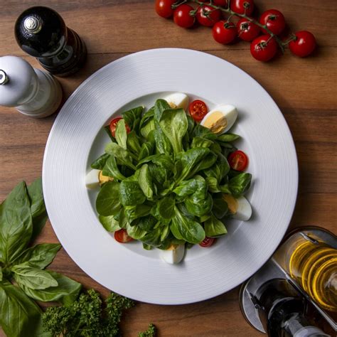 - Insalata mista con pollo e noci: con petto di pollo grigliato, pomodorini, cipolla rossa, uova sode, insalata mista e noci sgusciate, condita con olio, sale e pepe.