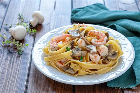 Pasta funghi e gamberetti: primi piatti veloci e semplici (creamy mushrooms and prawns pasta)