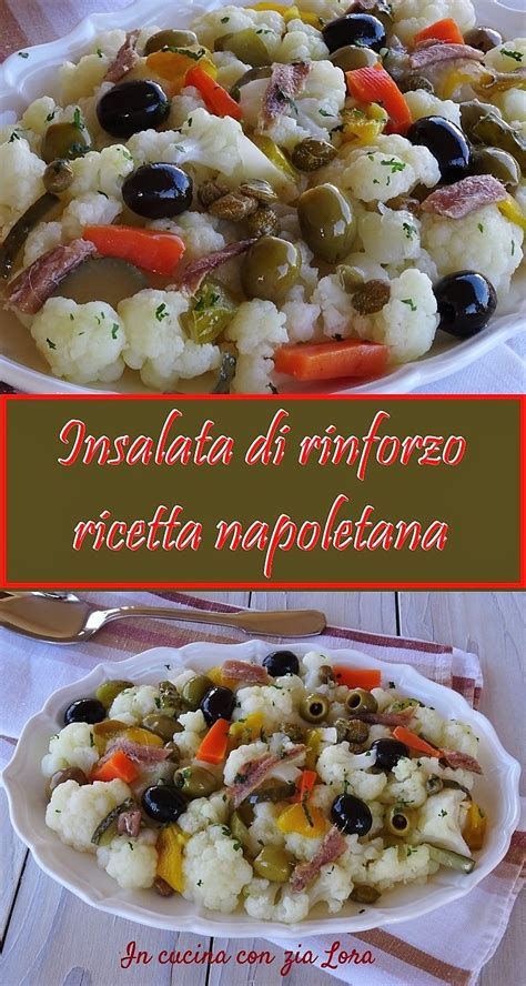 Insalata di rinforzo: Un classico della tradizione napoletana, questa insalata è immancabile sulle tavole natalizie. A base di cavolfiore lessato, olive, sottaceti e peperoni sott'aceto, l'insalata di rinforzo è un mix di sapori decisi che si sposa perfettamente con i secondi di pesce o di carne.