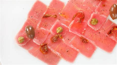 - Personalizzazione: Il carpaccio di tonno crudo si può personalizzare in tanti modi. Al posto di olive, pomodori secchi e capperi si possono usare tanti altri ingredienti a seconda dei gusti.