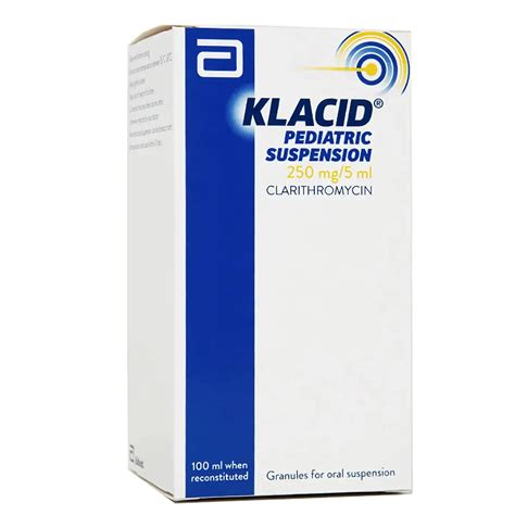 - KLACID 250 mg/5 ml Granulato per sospensione orale: 100 ml di sospensione ricostituita contengono 5,00 g di claritromicina.