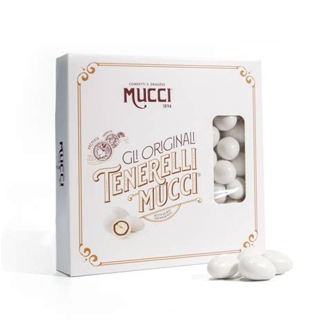 Negli anni Trenta, Nicola creò i famosi "Tenerelli Mucci", ancora oggi realizzati secondo la ricetta originale, con mandorle pugliesi della varietà "Filippo Cea" di Toritto, presidio slow food in terra di Bari, e "Nocciole del Piemonte IGP", ricoperte da cioccolato fondente bianco e da un leggero strato di confettura colorata.