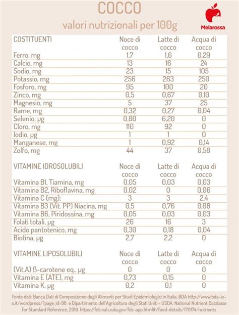 A livello nutrizionale, rispetto ad altre proposte di bevande vegetali come la soia o l’avena (o al latte vaccino stesso), si rivela molto calorico, in quanto ricco di grassi saturi: 100 ml si contano circa 200 calorie. Si tratta perlopiù di acidi grassi a catena media, come l’acido laurico, che ha un effetto positivo sulla salute cardiovascolare, in quanto contribuisce all’abbassamento del colesterolo LDL. Inoltre, il latte di cocco è una buone fonte di sali minerali, come selenio, zinco, potassio e magnesio, e di vitamine C ed E, e fibre. Il risultato è un cibo nutriente, saziante, da consumare con equilibrio, che apporta benefici al sistema immunitario e dalle proprietà antiossidanti.