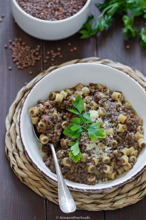 La pasta e lenticchie in brodo è uno dei comfort food per eccellenza, soprattutto durante le sere più fredde. Fate soffriggere le lenticchie sciacquate assieme a cipolla e carota, unite il concentrato di pomodoro, coprite con il brodo e fate sobbollire.