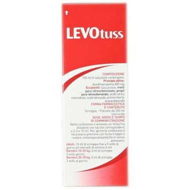Lo sciroppo Levotuss è un farmaco specificamente formulato per il trattamento sintomatico della tosse, in particolare della tosse secca. Questo sciroppo allevia i sintomi della tosse che porta ad una notevole irritazione della gola, grazie all’azione del suo principio attivo levodropropizina, una sostanza che appartiene ad un gruppo di medicinali chiamati “sedativi della tosse” e rapidamente assorbita nell’organismo. Levotuss è facile da assumere grazie al comodo bicchiere dosatore incluso nella confezione.