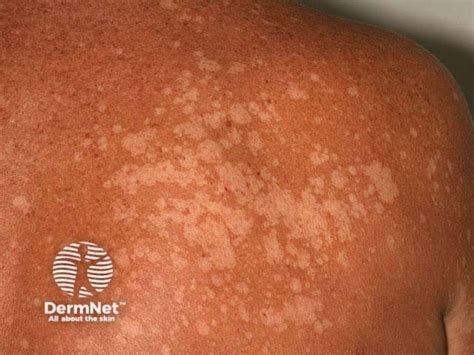 - Pitiriasi alba: è caratterizzata da chiazze ipopigmentate con desquamazione lieve, e colpisce spesso i bambini. Di solito non è pruriginosa e si localizza principalmente su viso e braccia.