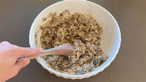 - In un'altra ciotola mescola i cereali soffiati con il sesamo, le nocciole tagliate a pezzetti, la farina di mandorle e il malto. Strizza bene gli ingredienti che erano in ammollo e aggiungili al composto. Mescola bene schiacciando con il cucchiaio.