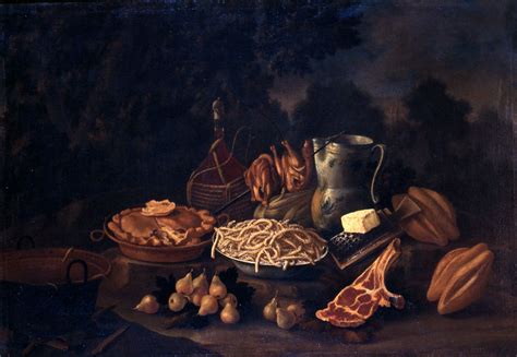 Infatti, nel Cinquecento la pasta sembra che non fosse considerata un alimento popolare, il popolo si alimentava soprattutto di pane, minestre, verdure, tanto che a metà dello stesso secolo il prezzo dei maccheroni o delle lasagne risultava circa tre volte superiore a quello del pane. olio su tela 1660 ca.