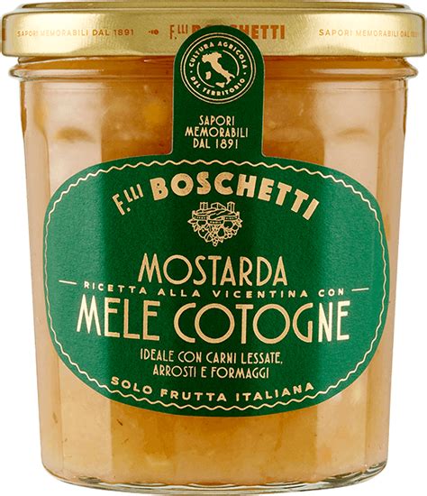 - Mostarda di mela cotogna: La mostarda di mela cotogna è una specialità mantovana, una conserva originale e ricca di sapore. Consideriamo 1 kg di mele cotogne. Proseguiamo mettendole in una ciotola, unendo mezzo kg di zucchero e mescolando per bene. Dopo un giorno di riposo, preleviamo il succo che nel frattempo si è creato, facciamolo addensare per una decina di minuti sul fuoco e aggiungiamolo nuovamente alla frutta. Poi facciamo passare altre 24 ore e ripetiamo quest’ultima operazione. Un altro giorno ancora e possiamo mettere a bollire le fettine di mele cotogne con il loro succo, per una decina di minuti al massimo. Lasciamo raffreddare e dividiamo la mostarda nei vasetti di vetro sterilizzati.