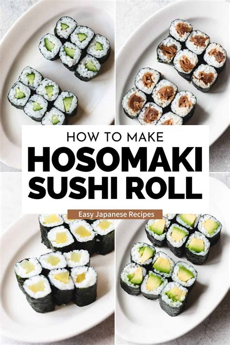 | Hosomaki | Rotolo stretto con alga nori all'esterno | Riso, alga nori, pesce o verdura |
