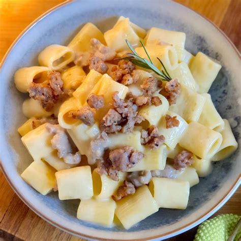 - Pasta: noi abbiamo utilizzato il formato di pasta corta che avevamo in casa, ovvero le penne rigate, ma naturalmente usate il formato di pasta corta che preferite o che avete semplicemente in dispensa. Vanno bene fusilli, trofie, cortecce, farfalle, mezze maniche, ecc. Ad esempio, i paccheri o i rigatoni sono delle ottime alternative. Eviterei invece la pasta lunga perché una delle cose più gustose di questa pasta è che i pezzettini di salsiccia si intrufolano all’interno.