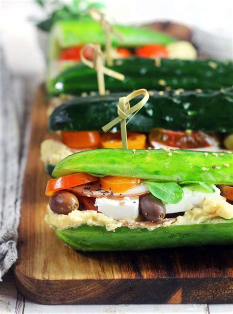 Un diverso modo di dire panino! Zero pane, zero farine, 100% cetriolo. I panini di cetriolo ripieni sono un'idea divertente per addentare un sandwich sano e salutare nelle calde giornate d'estate.