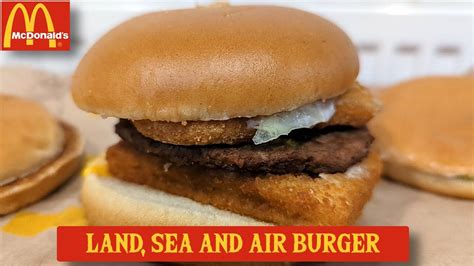 - The Land, Sea and Air Burger: Questa enorme hamburger unisce tutti e tre i panini più richiesti nei ristoranti McDonald e contiene due hamburger di manzo, un filetto di pesce e una cotoletta di pollo.