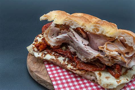 Il golosissimo Panino rustico alla porchetta e peperoni è pronto per essere gustato, ancora caldo, in tutta la sua squisita bontà! Servitelo con un bicchiere di vino o una birretta fresca.