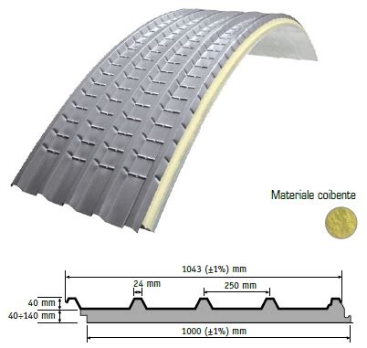 Il pannello sandwich curvo Archimede monolamiera R=3,30 rappresenta una soluzione ideale per la coibentazione e l’impermeabilizzazione di strutture prefabbricate curve, con soletta continua, in C.A.P. e nei casi di bonifica del fibrocemento o amianto su travi a Y. Si configura come un sistema economico, personalizzabile, performante termicamente, veloce da installare e leggero da movimentare in cantiere.Elementi che compongono il pannello Archimede: